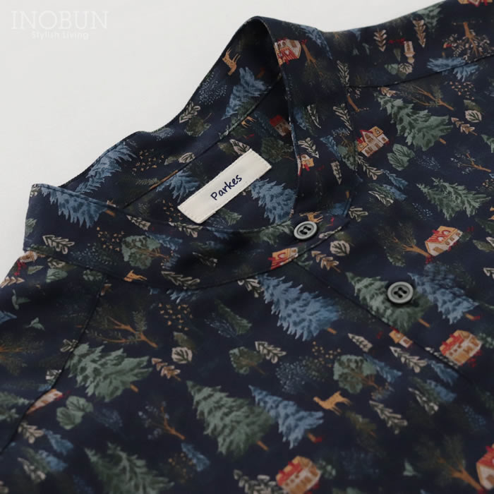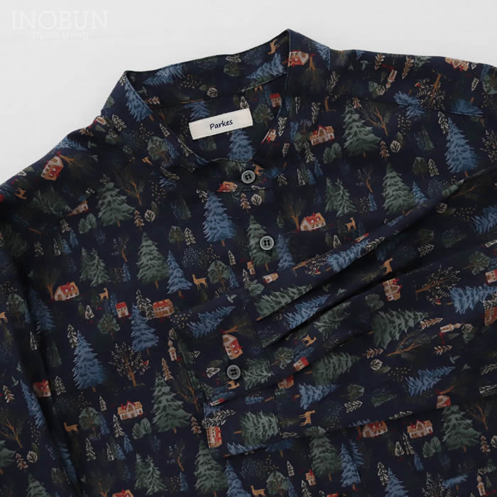 Soldout 【完売】Parkes 小丸衿レギュラーシャツ 60ローン 森の動物 キナリ Mサイズ ブラウス パークス