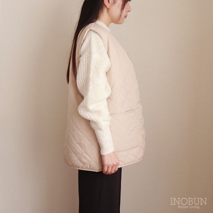 キルティングロングベスト Daily Quilt2 ライトベージュ INOBUN イノブンオリジナル ギフト 温活