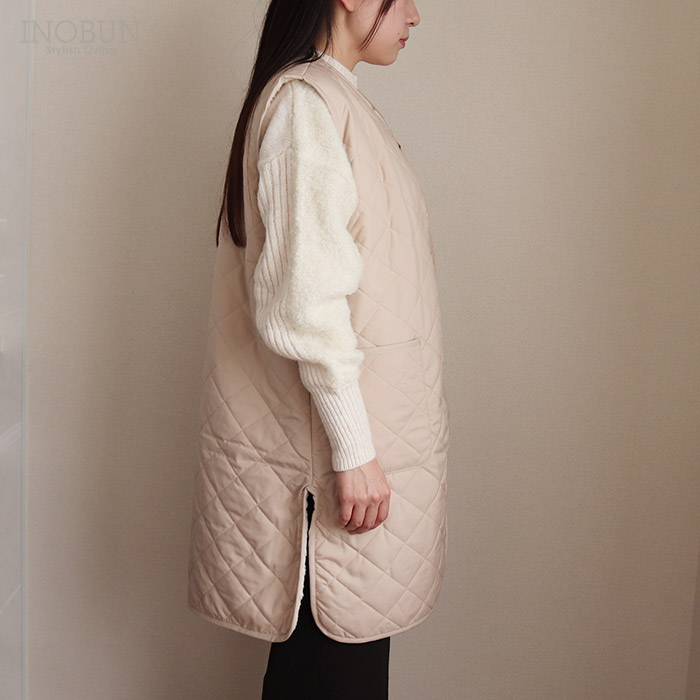 キルティングロングベスト Daily Quilt2 ライトベージュ INOBUN イノブンオリジナル ギフト 温活