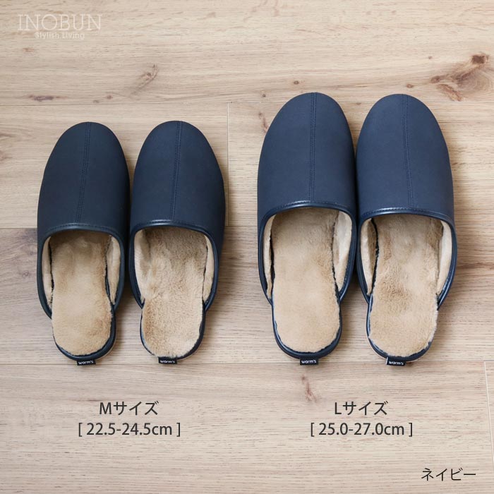 Soldout 秋冬限定 ウォームズ warm's スリッパ M 22.5~24.5cm ネイビー フロンティア 上質 ボア ルームシューズ セール