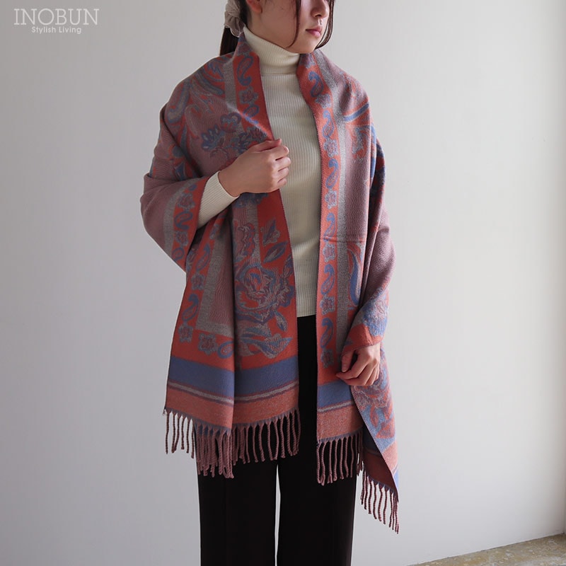 ロイヤルフラワーストール ベージュ マフラー 薄手 大判 オリエンタル 大人 セール