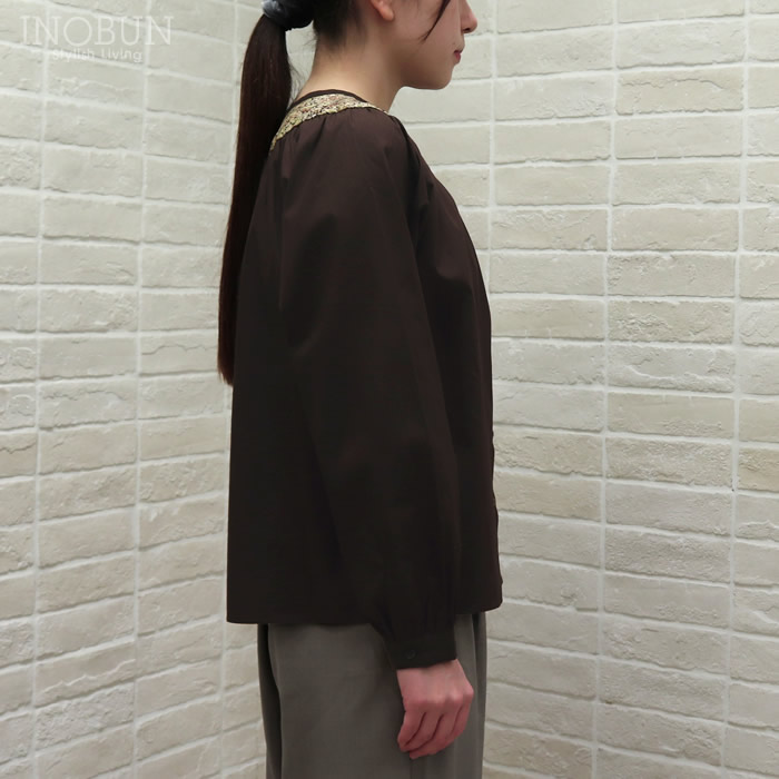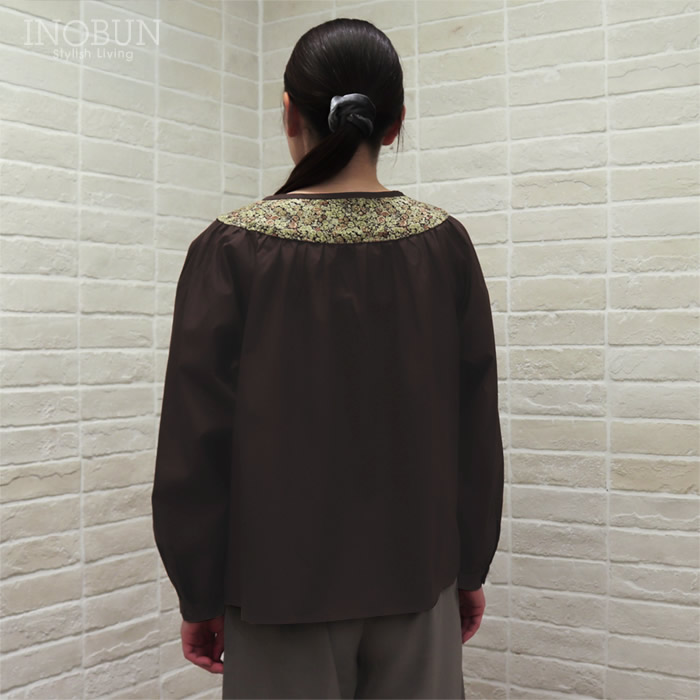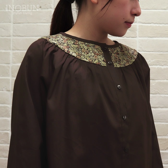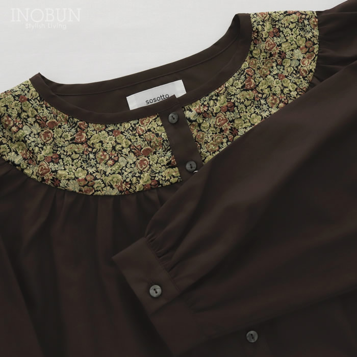 sosotto ブロード×LIBERTY 切替ブラウス ネイビー NVY×Chive セール