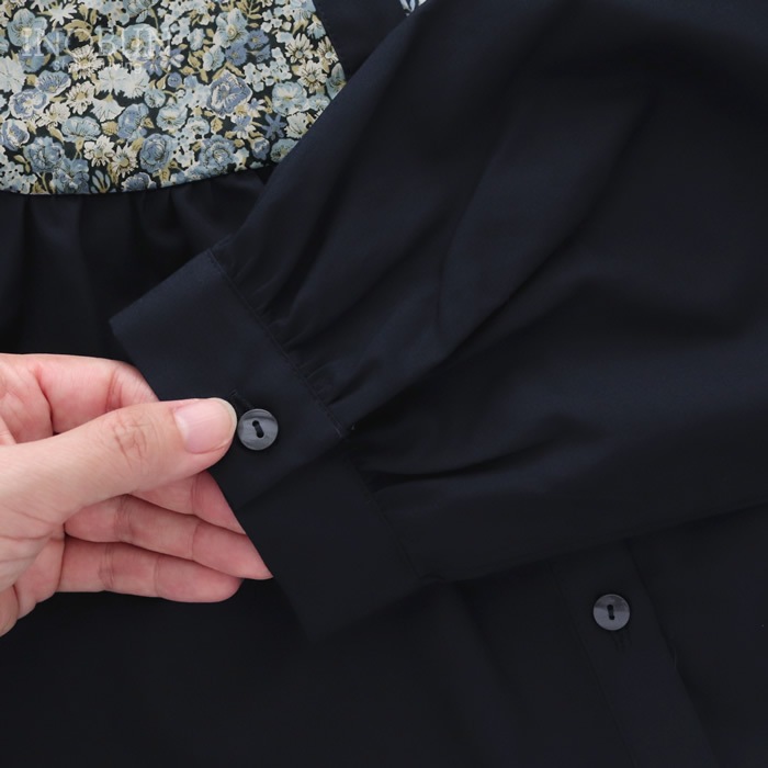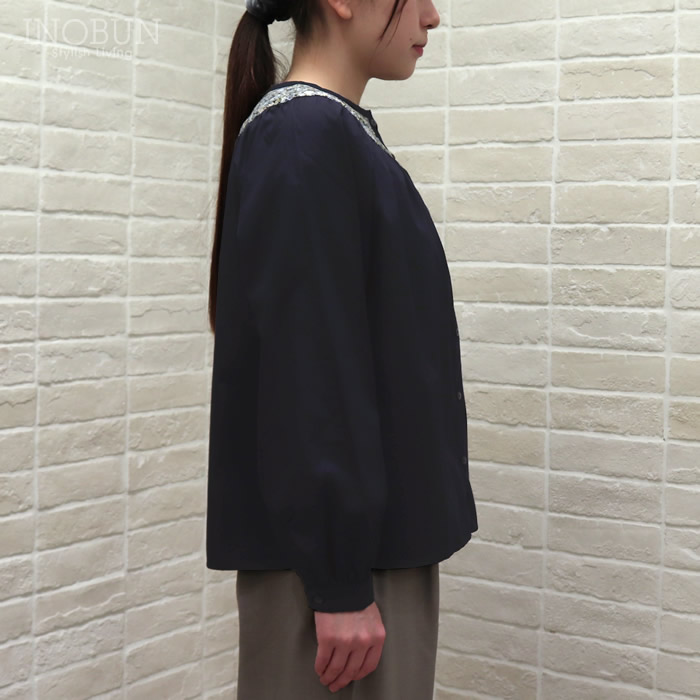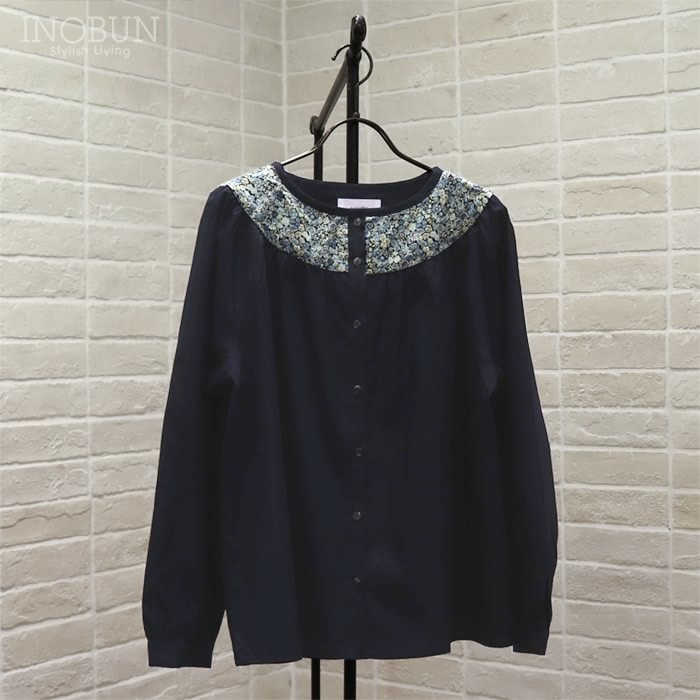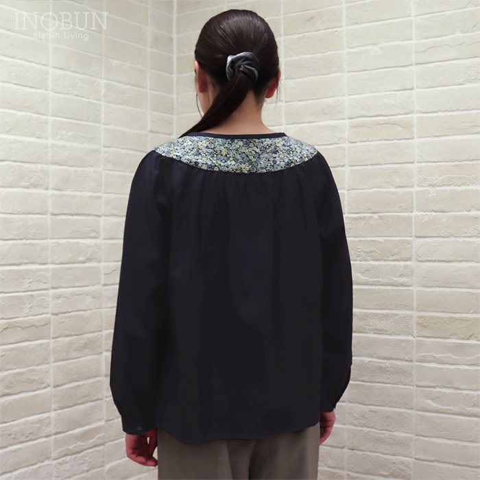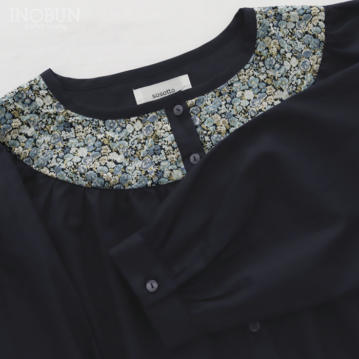 sosotto LIBERTY タナローン胸シャーリングブラウス ネイビー系 NVY/PansyScatter