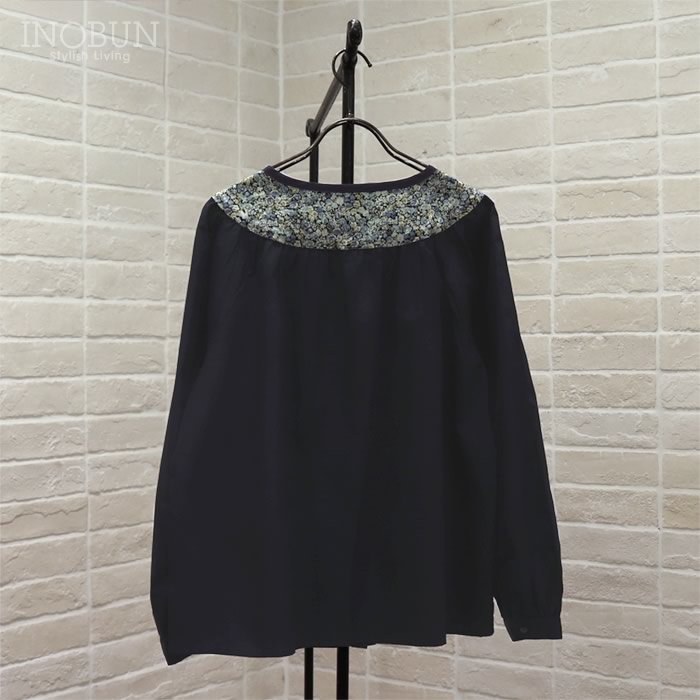 sosotto ブロード×LIBERTY 切替ブラウス ダークブラウン DBR×Chive セール