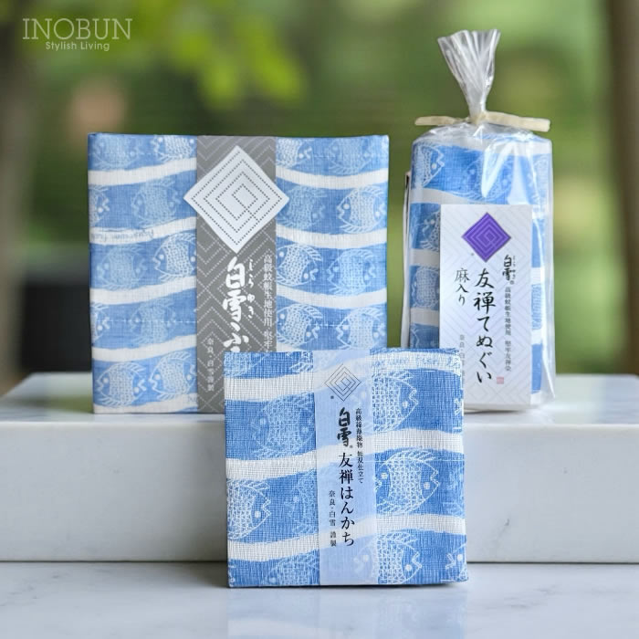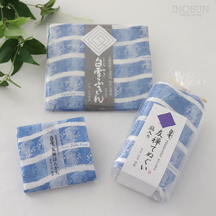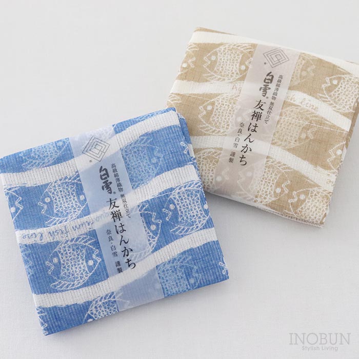 • 白雪 友禅染はんかち アクアリウム アクアブルー 白雪はんかち 30 x 30cm