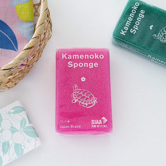 【限定色】亀の子スポンジ ツバキ ピンク 食器洗い 抗菌 銀イオン 日本製 新生活