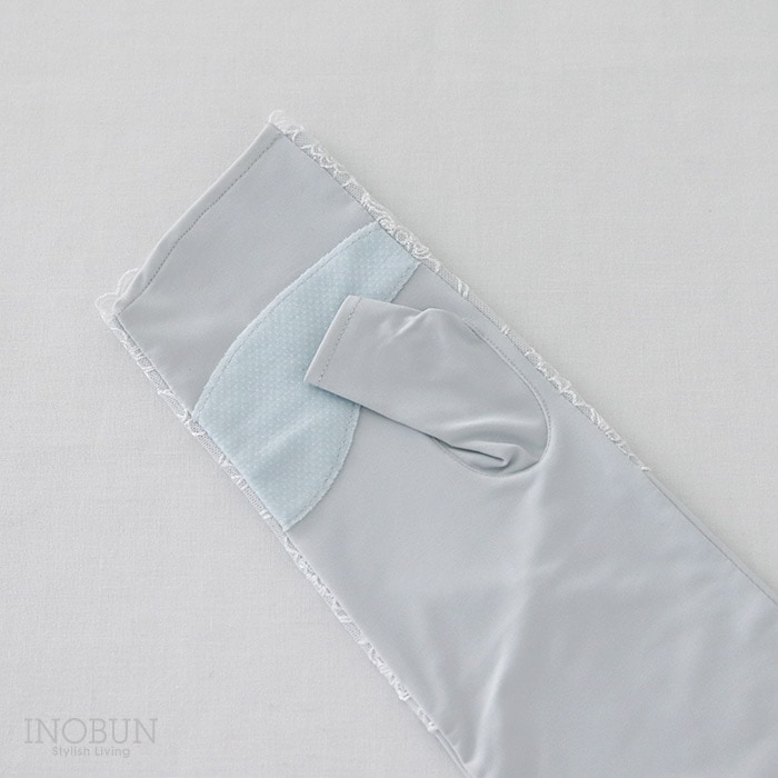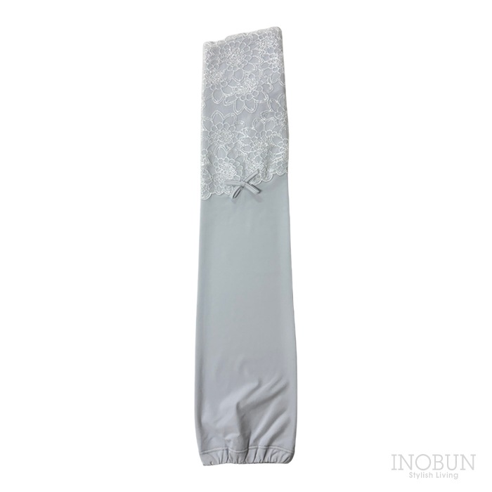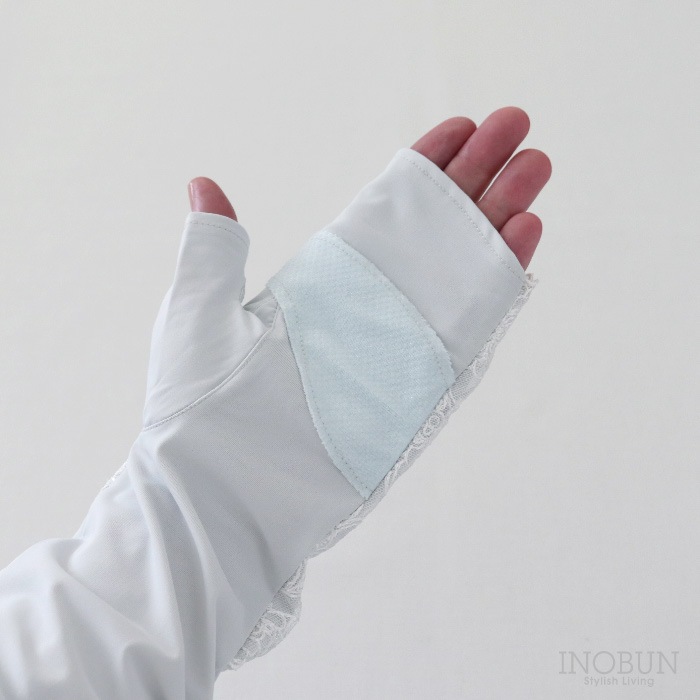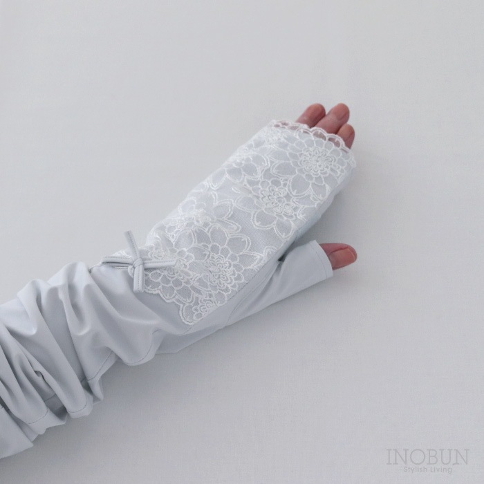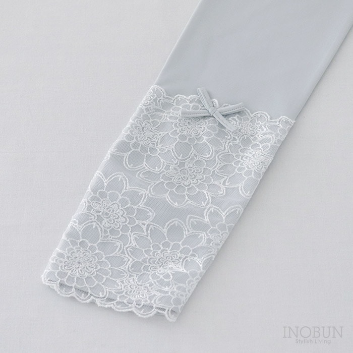 UVカット アームカバー ロング 冷感 花レースリボン ライトグレー 指なし 手袋 抗菌 防臭 速乾 滑り止め ひんやり